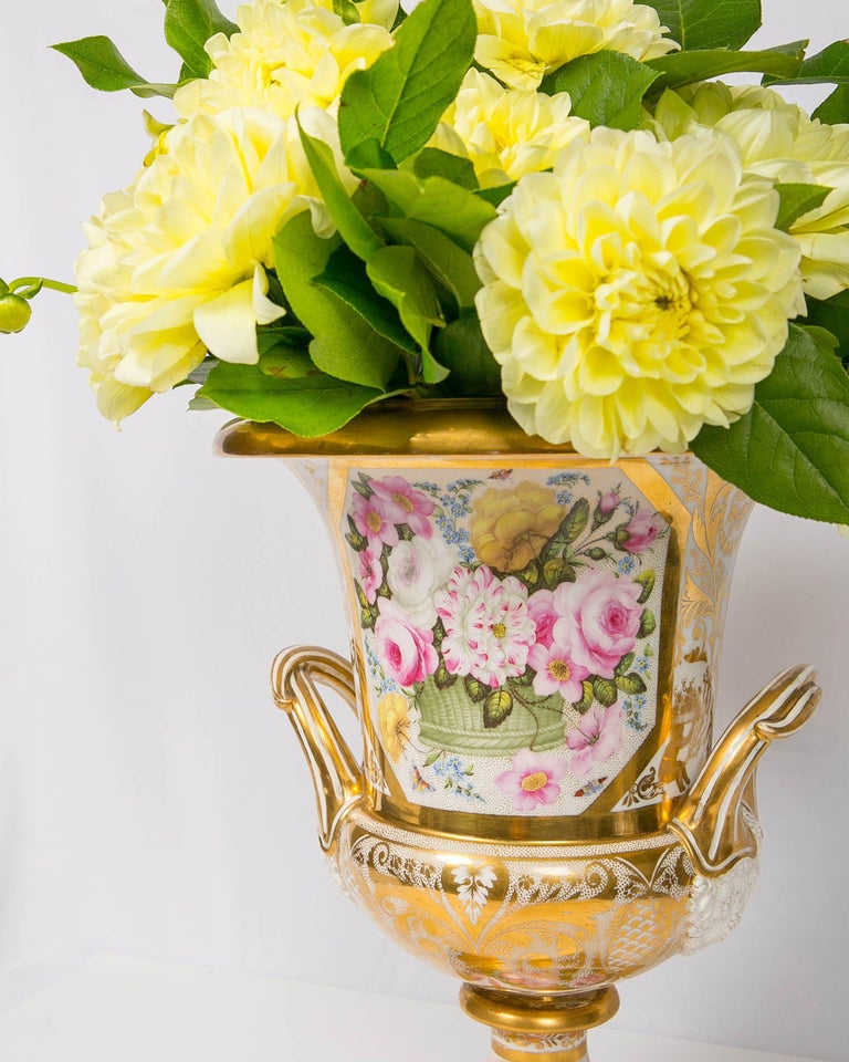 Large Antique English Porcelain Vase (Urn) Hand Painted with Roses & Gilding, c.1820